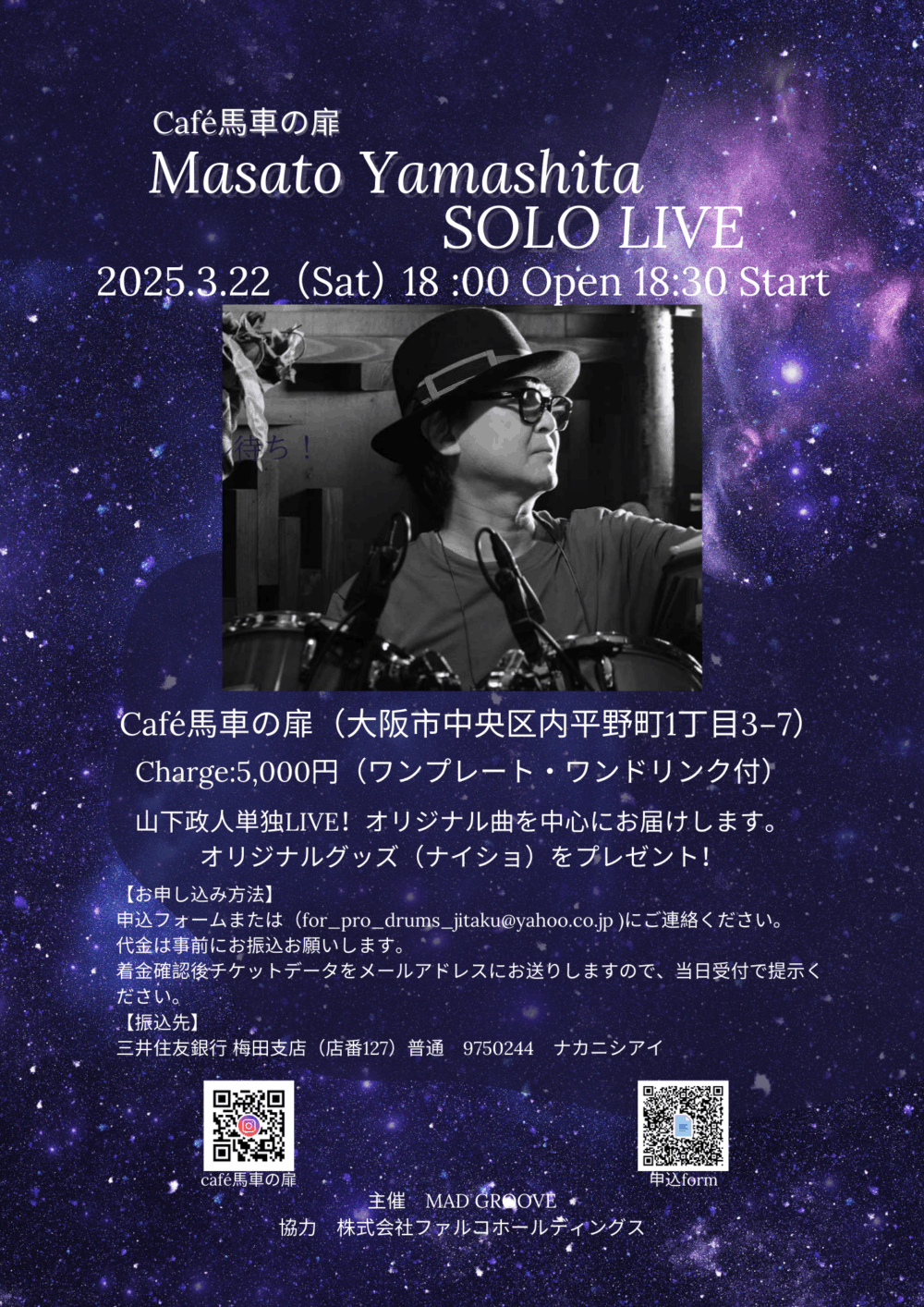 2025年3月22日:山下政人SOLO LIVE Café馬車の扉